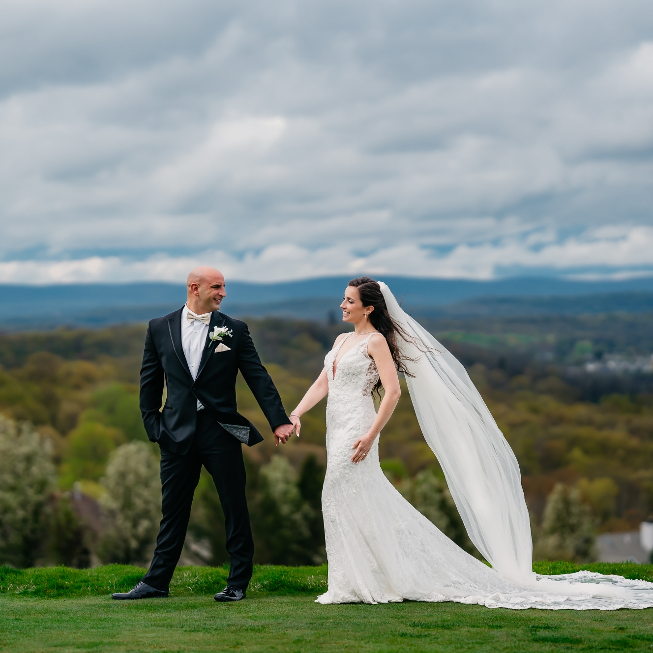 SkyView Golf Club is New Jersey’s premier and most scenic wedding venue. Featuring more than 190 acres of picturesque scenery, it’s a beautiful and intimate setting that perfectly blends elegance and rustic charm. From the cocktail hour room, with its floor-to-ceiling glass doors unveiling panoramic views of the golf course, the mountains, and stunning sunsets, to the classic ballroom, featuring 18-foot-high, custom-designed ceilings illuminated with six crystal chandeliers, SkyView is designed for a truly unforgettable wedding day.